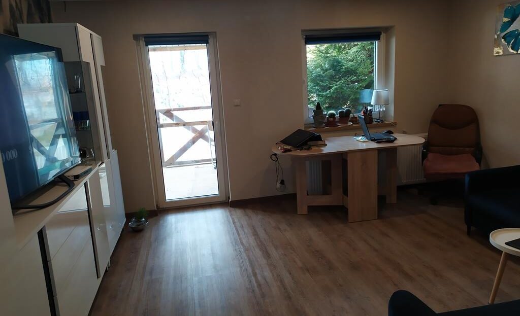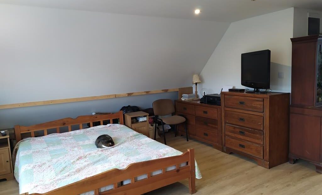 Pokój 18m z wyjściem na zadaszony taras 2,8mx4,2m (12m) od zachodniej strony.