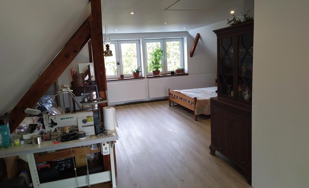 Nad piętrem ocieplone poddasze- na przechowywanie rzadko używanych rzeczy.