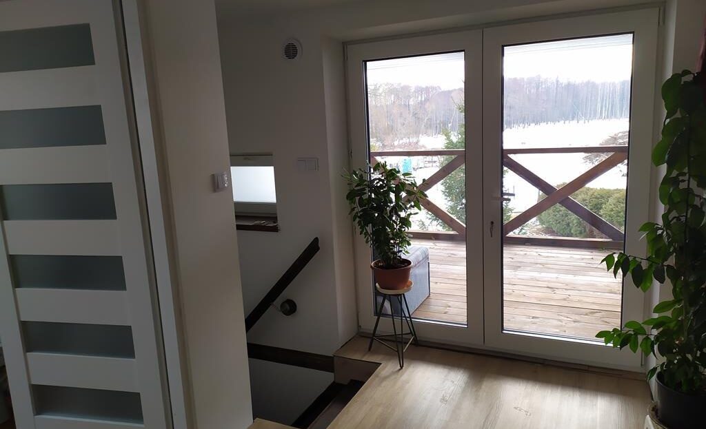 Kuchnia 20m z jadalnią, wyjściem na duży zadaszony taras 6x4m plus 2×5,40m (35m) z widokiem na jezioro Mamry od wschodniej strony.