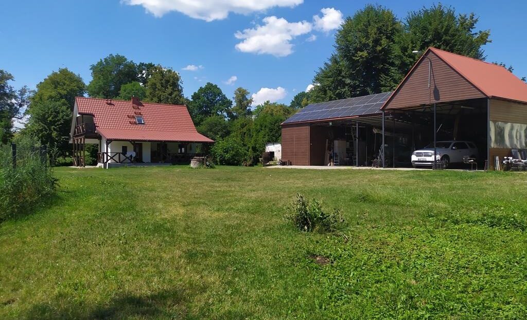 stodołą 200 m, budynkiem gospodarczym 34m i wiatą 122m z garażem 21m.