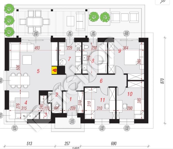 W salonie istnieje możliwość montażu kominka (wybudowano przeznaczony do tego komin i napowietrzenie).