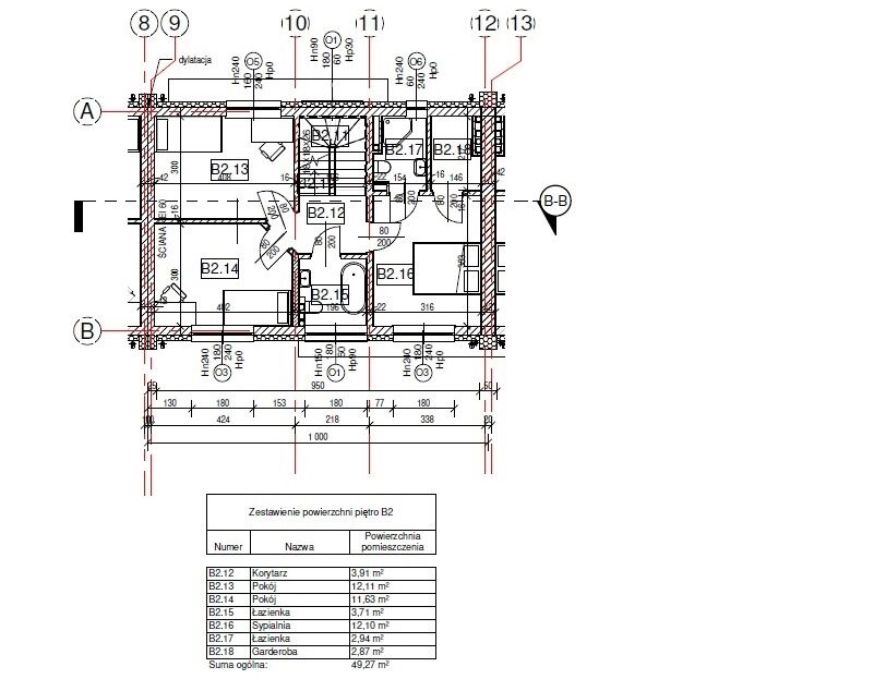 Wysokość wszystkich pomieszczeń w granicach 2,9m,