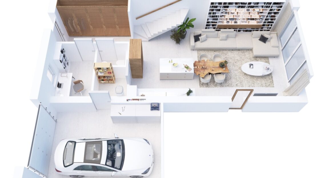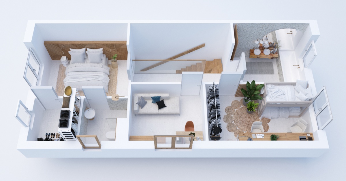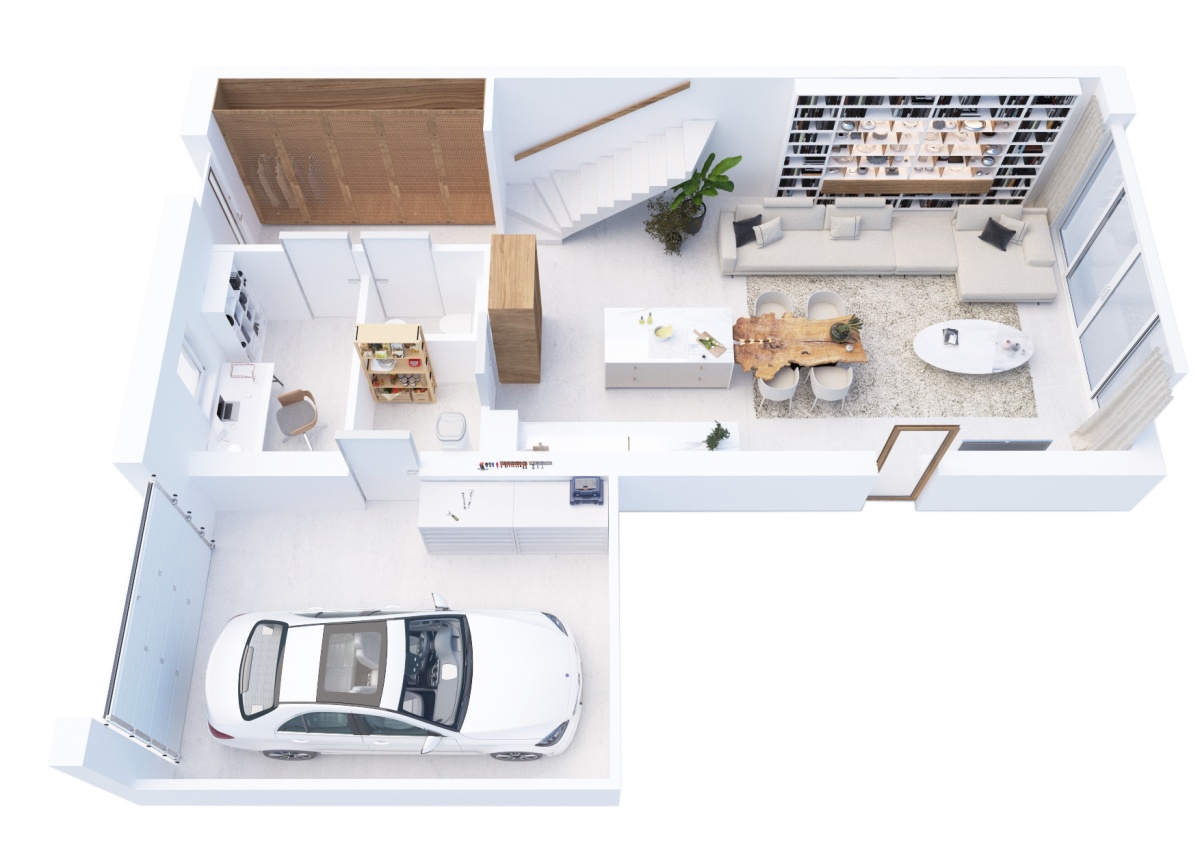 – przestronny salon z kuchnią i jadalnią na parterze