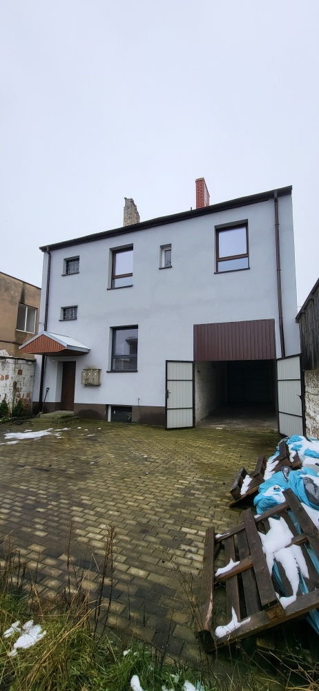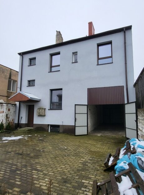 Budynek gospodarczy z dobudowanym piętrem o pow. 52m2 z nową elewacją i nowym dachem przykrytym blachą.