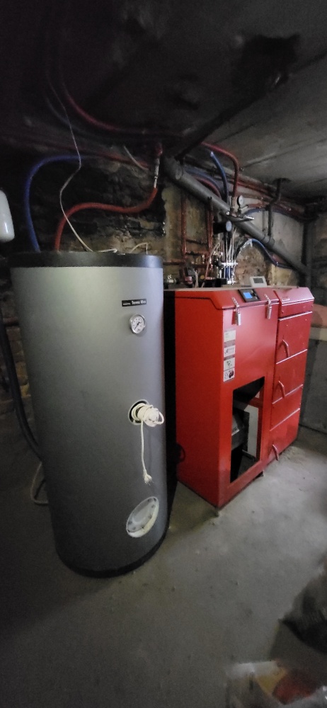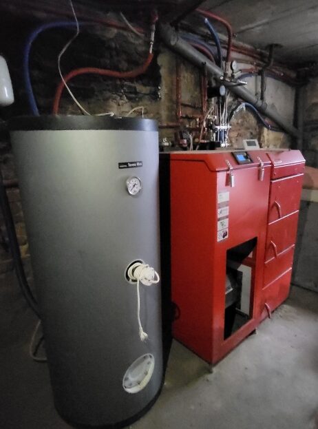 Dom podpiwniczony. Ogrzewany piecem na pellet z buforem c.o. Kospela o pojemności 300l