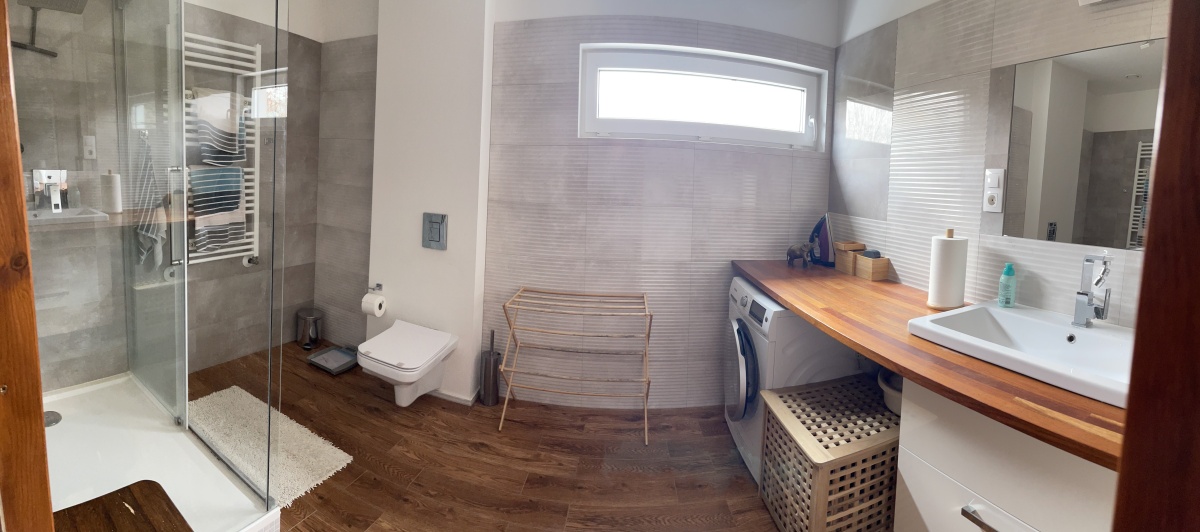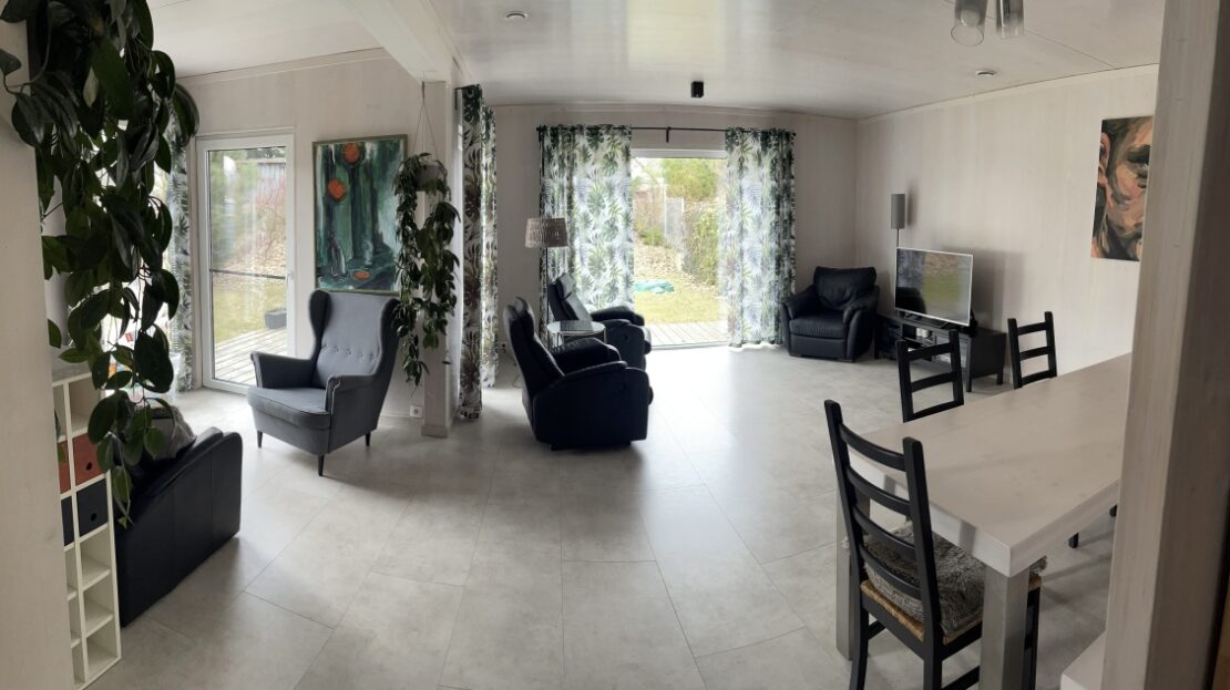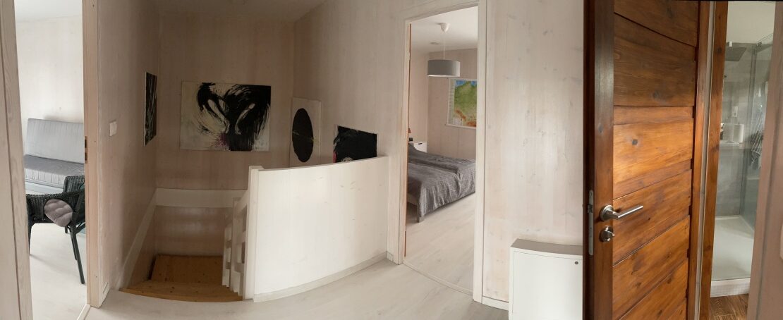 Powierzchnia ok. 123 m2, z możliwością zagospodarowania poddasza i balkonów, w zabudowie bliźniaczej, na działce ok. 5 ar. Budynek wybudowany w ciepłej technologii CLT.