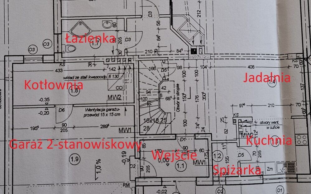 Konstrukcja: cegła (pustak ceramiczny Max 25), ocieplenie styropianem (10 cm), dachówka ceramiczna