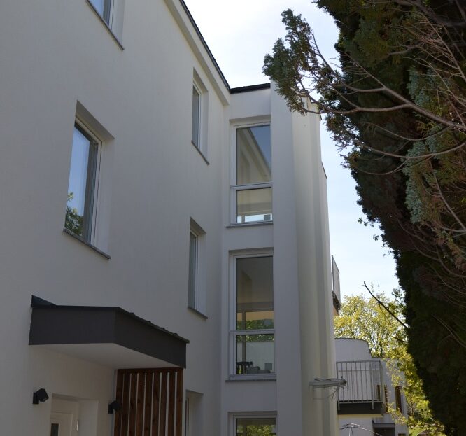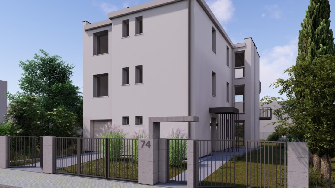 Budynek nawiązujący do modernizmu , o ponadczasowej prostej bryle z płaskim dachem i białą elewacją jest zrealizowany ze szczególnym naciskiem na funkcjonalność stref i układu pomieszczeń.