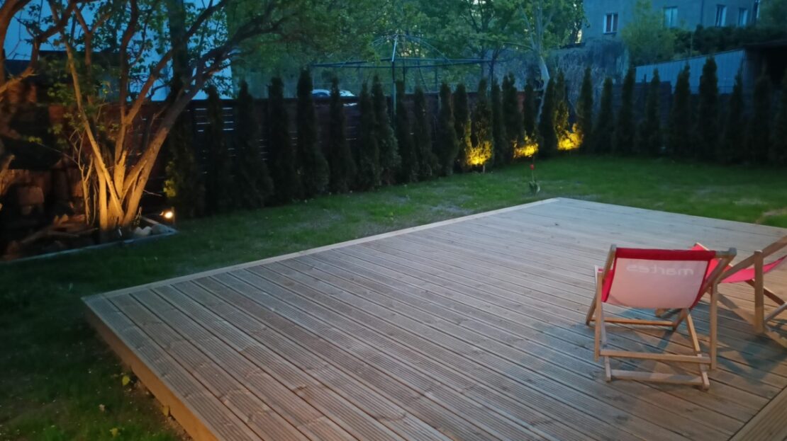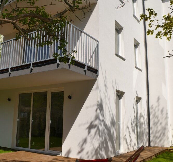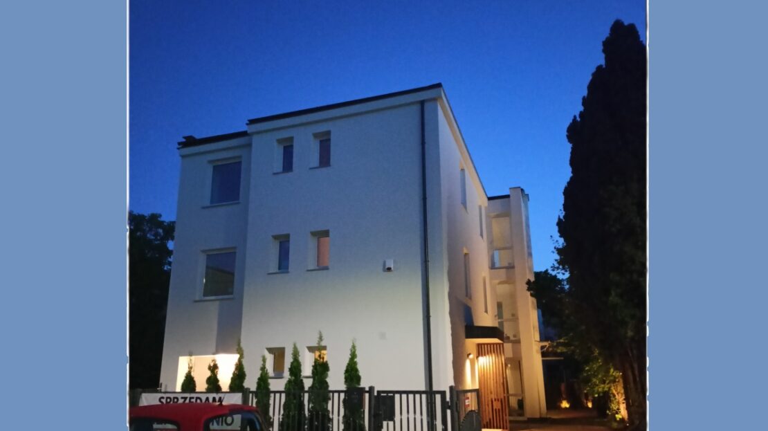 z tarasami 60m2 , ogrodem , garażem i miejscami parkingowymi.
