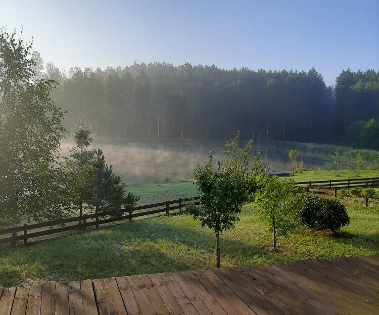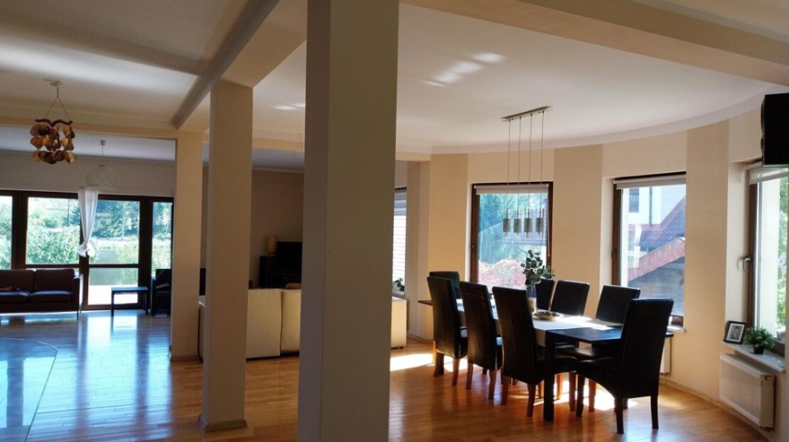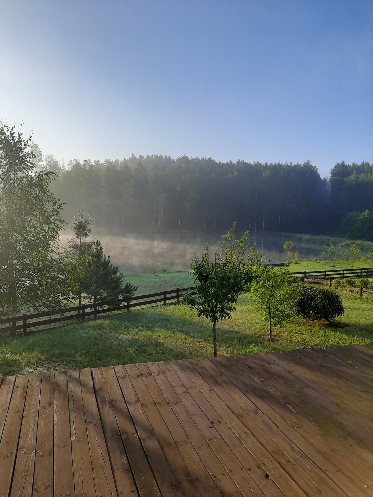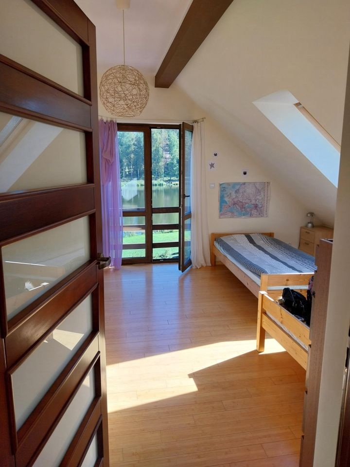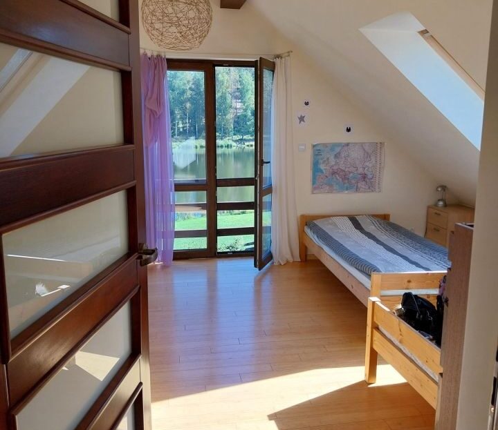 Dom usytuowany jest na kameralnym osiedlu domów jednorodzinnych z widokiem na staw, w otoczeniu lasów i tuż obok jeziora Purda.