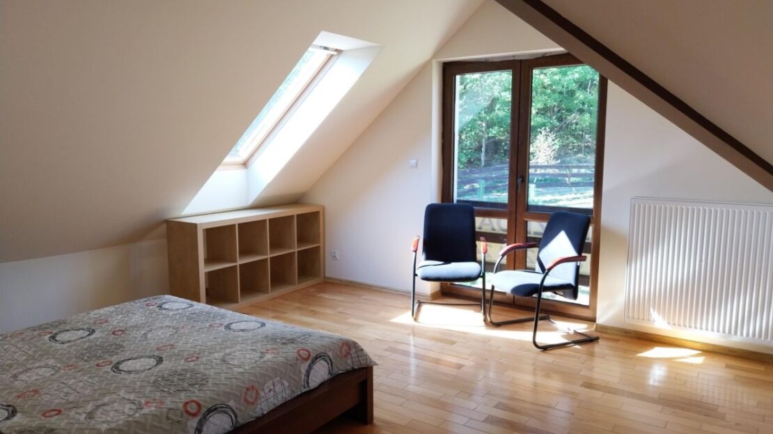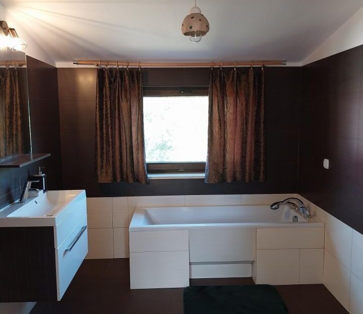 – prąd, własne ujęcie wody, gaz, szambo; ogrzewanie: gazowe, kominek, centralne ogrzewanie