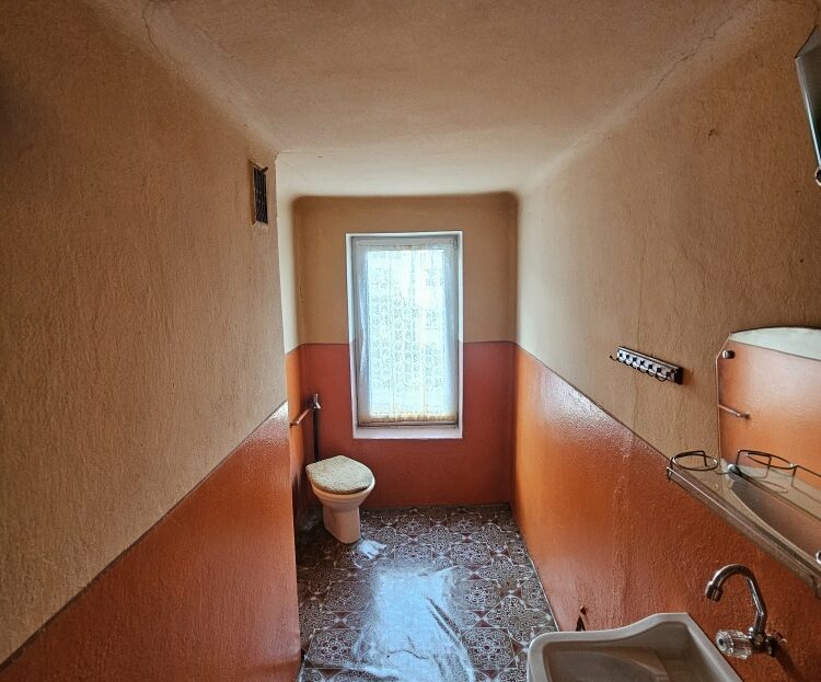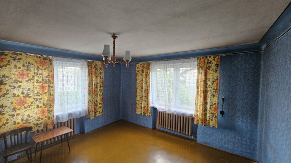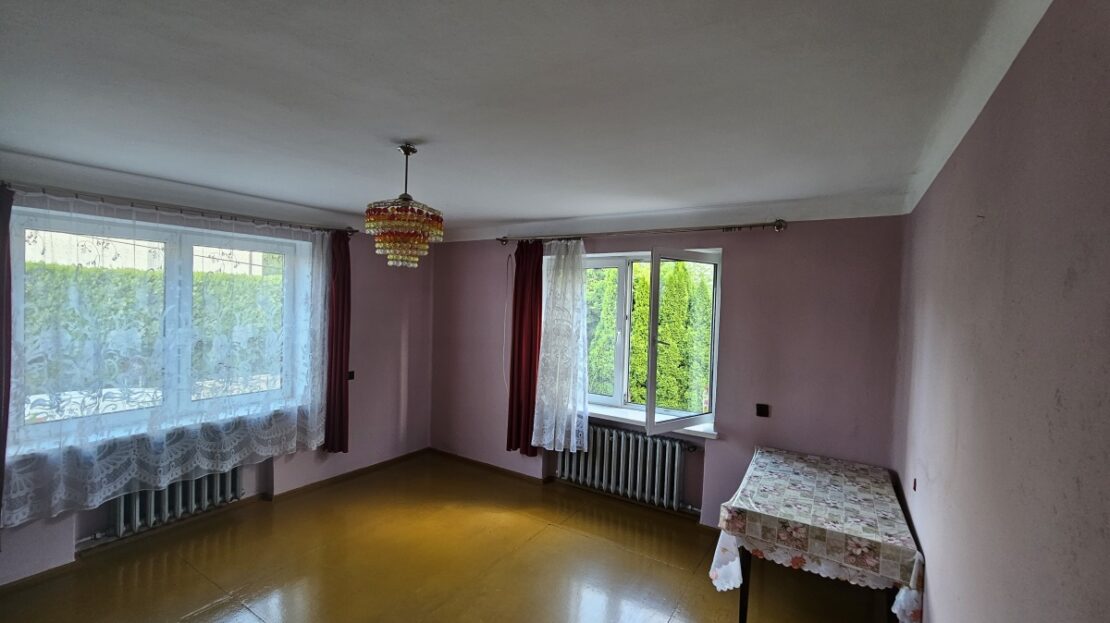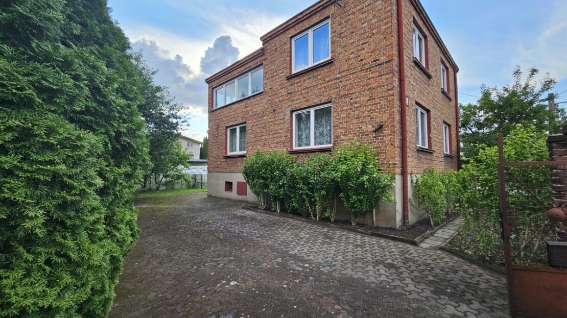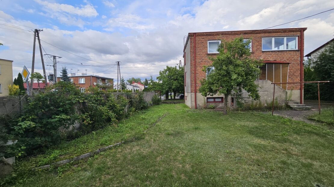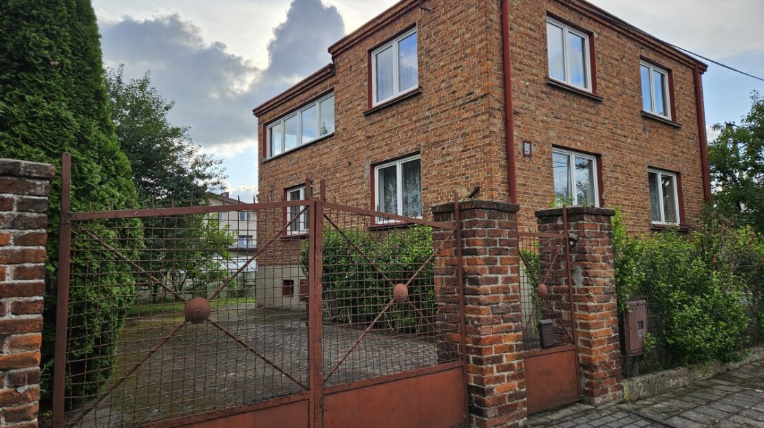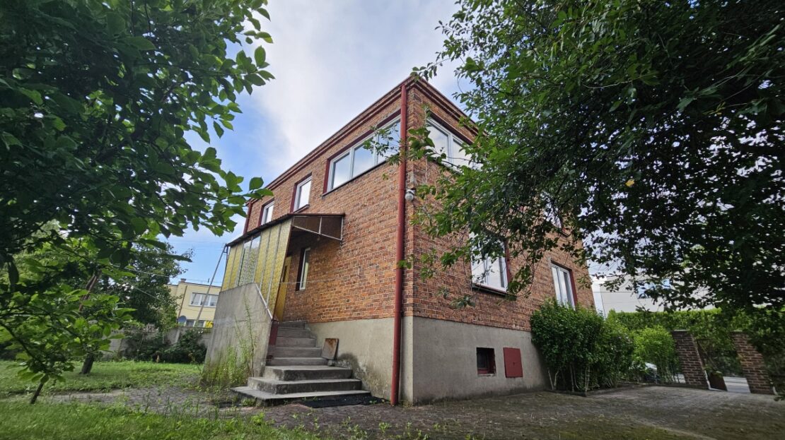 Dom z lat 70 o powierzchni użytkowej około 130 m² zbudowany z czerwonej cegły, dach pokryty papą (kominy po remoncie – maj 2024). Ponadczasowy układ typu "kostka" z dużymi, ustawnymi pokojami na dwóch kondygnacjach. Budynek jest w pełni podpiwniczony, z garażem w bryle. Okna plastikowe, ogrzewanie centralne – piec węglowy. Istnieje możliwość przyłączenia do sieci gazowej – skrzynka gazowa na terenie posesji.