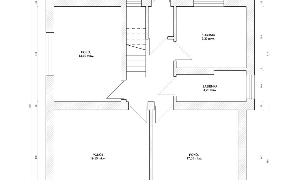 Poniżej dokładny rozstaw i metraże pomieszczeń: