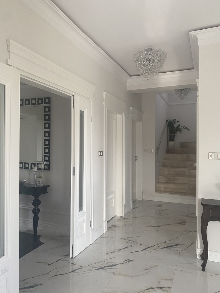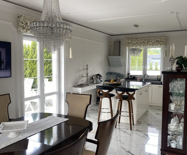 -Na sprzedaż dom w stylu rezydencji o powierzchni 220,7m2, w bliskiej odległości od trasy ekspersowej S7 Warszawa-Gdańsk. Dom znajduje się w miejscowości Przezmark, dojazd do Trójmiasta zajmuje ok. 30 min., do Elbląga ok. 10 min. Dom składa się z 5 pokoi, trzech łazienek, otwartej kuchni oraz wbudowanego garażu z dwoma stanowiskami. Nieruchomość jest wyposażona w wysokim standardzie: włoska armatura, włoskie płytki, klamki, marmurowe okładziny, parapety i inne dodatki. Zastosowane sztukaterie wykonane są z gipsu, a stylowe drzwi z drewna. Dom ogrzewany jest piecem olejowym oraz kominkiem z płaszczem wodnym. Kominek zabudowany jest pięknymi, ręcznie wykonanymi kaflami piecowymi. Na zewnątrz posesji znajdują się rozległe tarasy, pełnowymiarowy kort tenisowy i ogród z drzewami owocowymi. Nieruchomość sprzedawana jest z pełnym wyposażeniem wewnętrznym i ogrodowym. Sprzedaż bez pośredników.