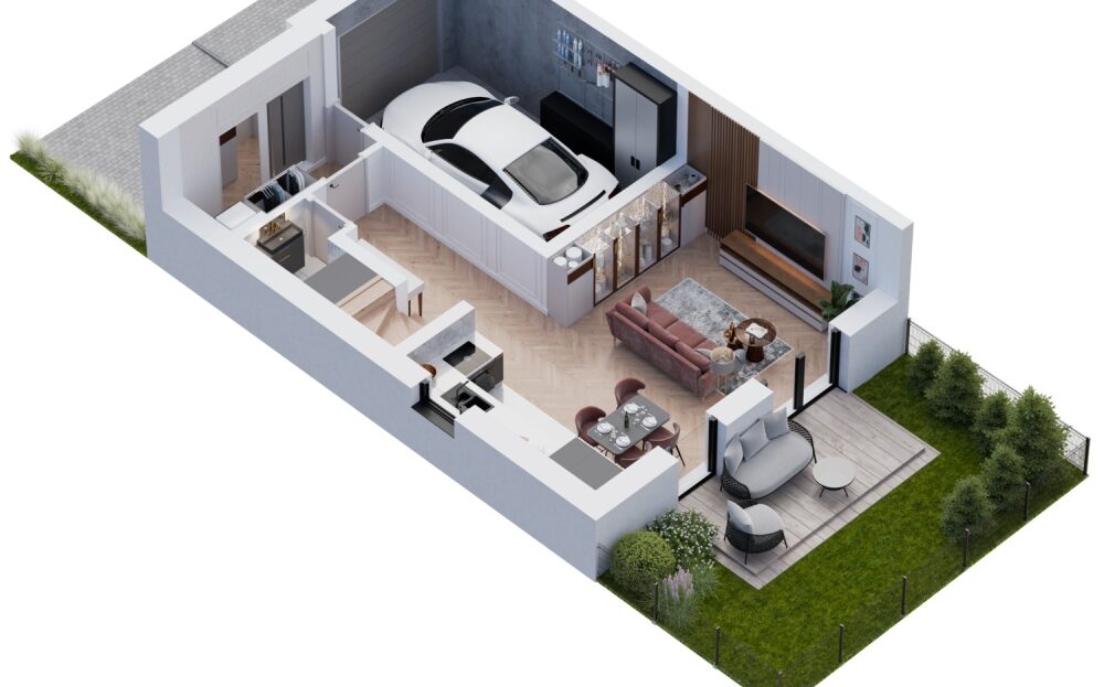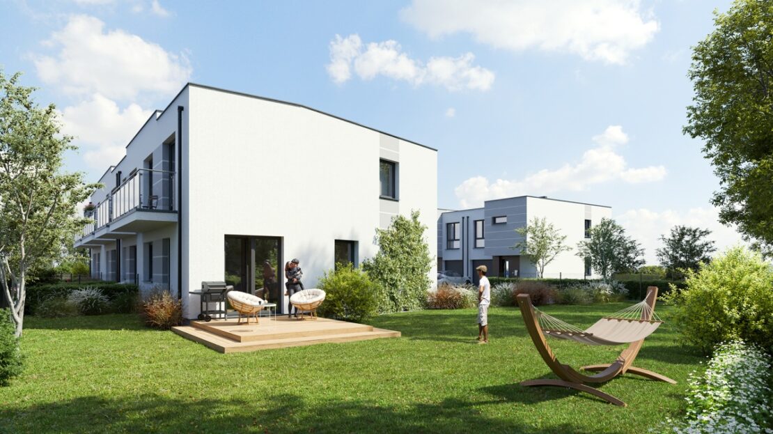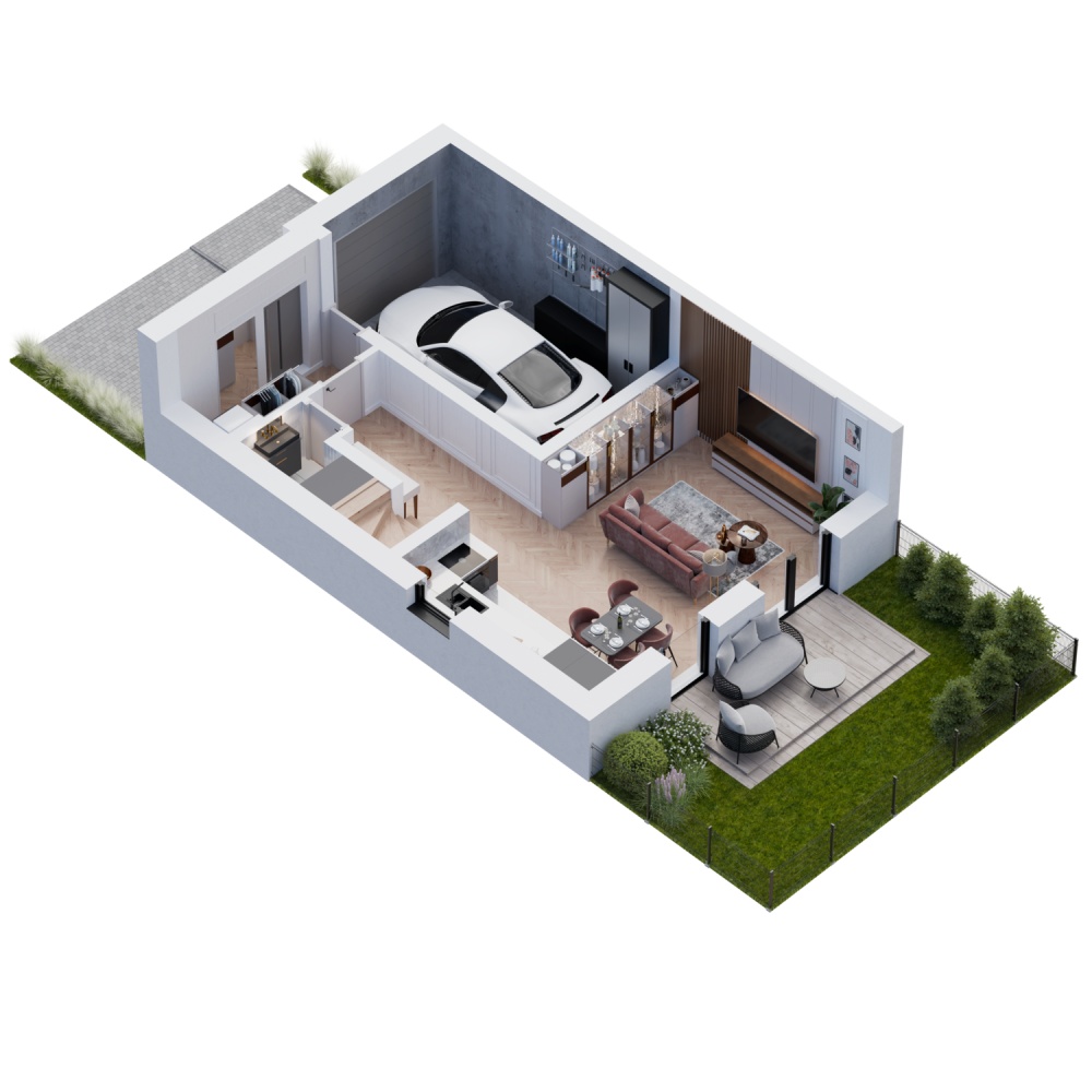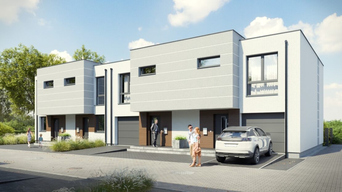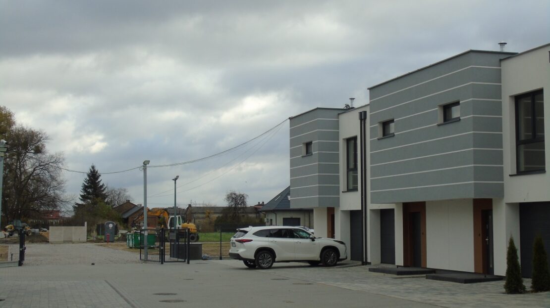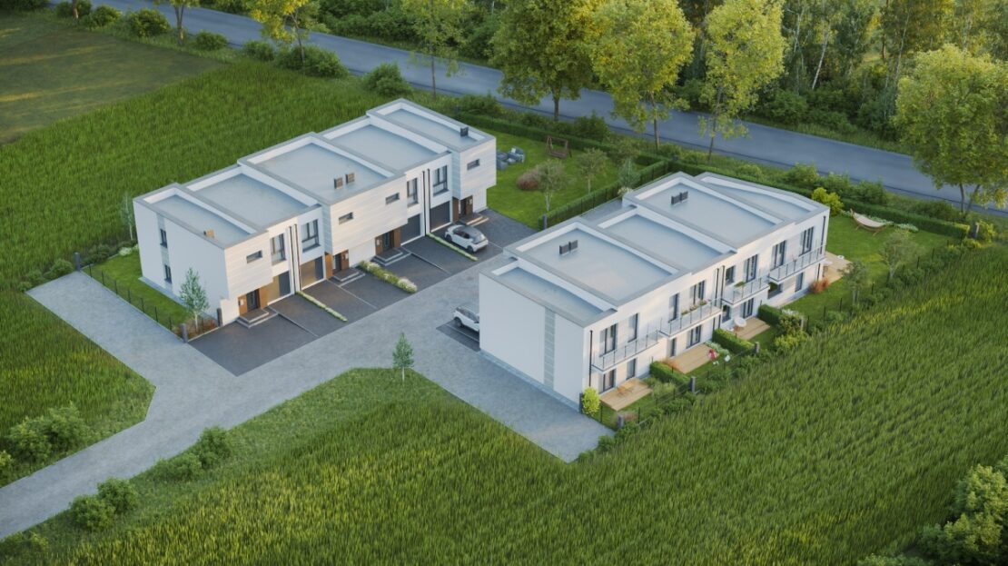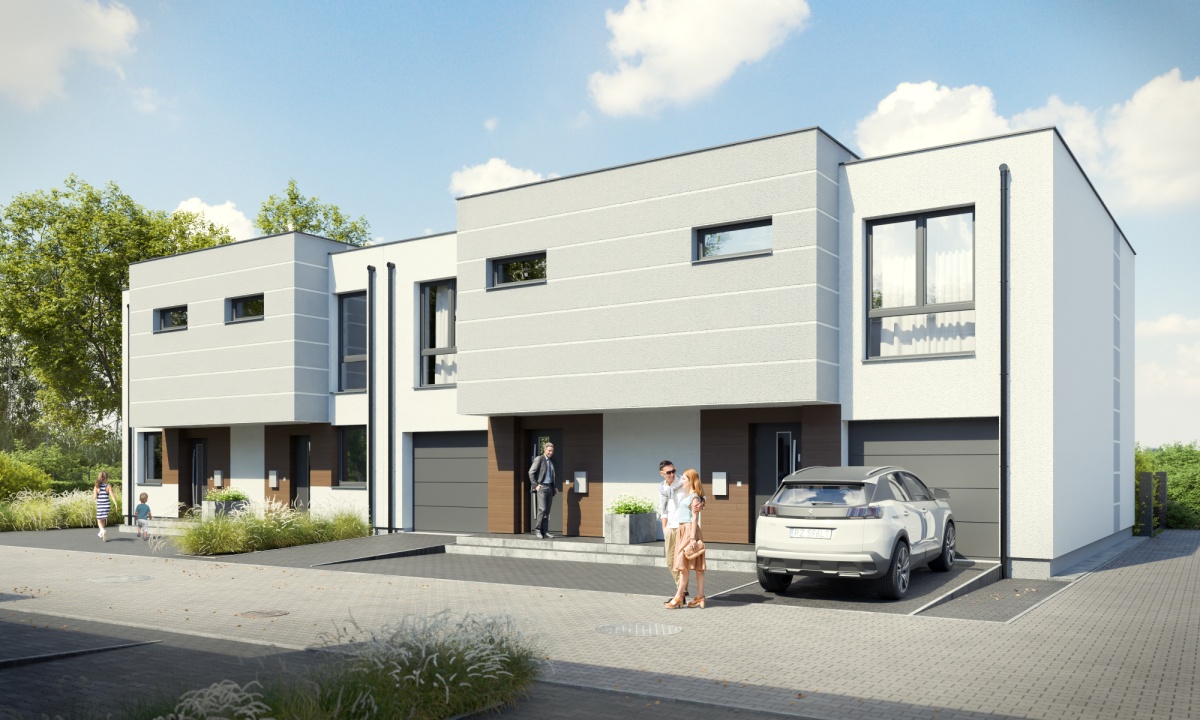 jest we własny garaż z podjazdem. Każdy z domów posiada urokliwy