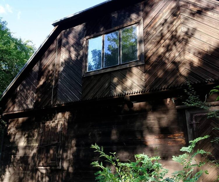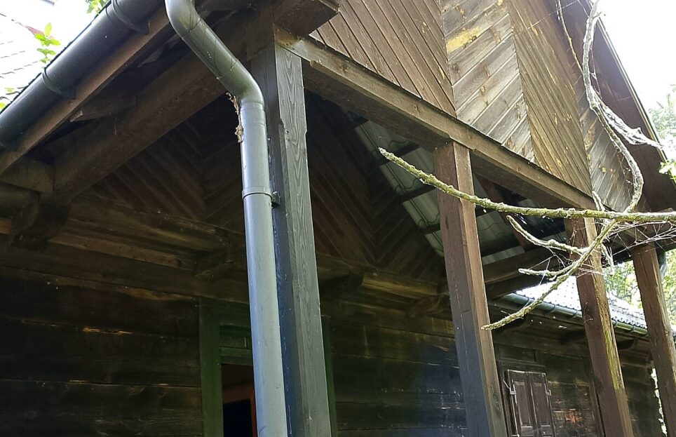 Dom w konstrukcji drewnianej , z trzema małymi podpiwniczeniami i wymienionym za zgodą konserwatora dachem w 2000 roku .