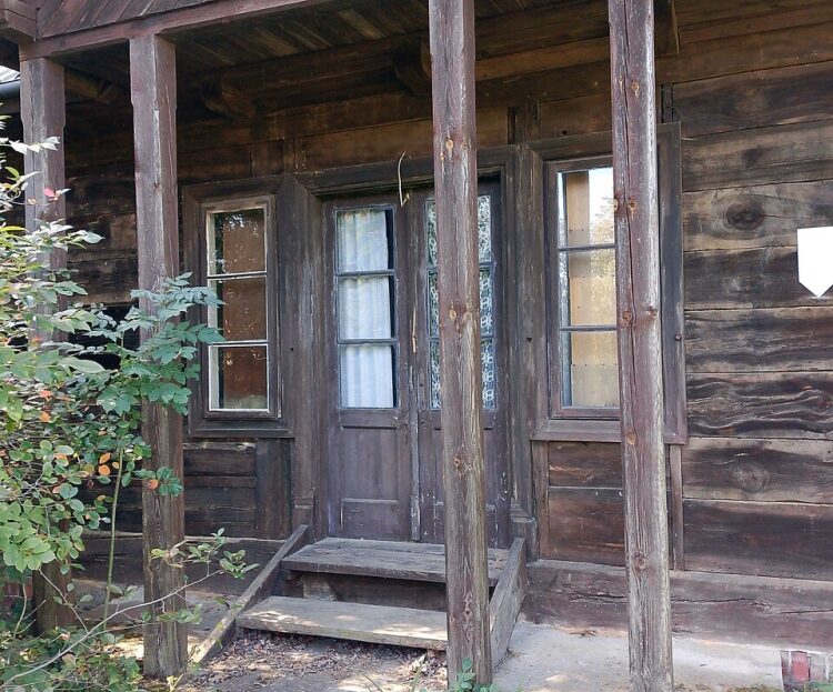 Wiejski dom w stylu dworku szlacheckiego wybudowany w 1890 roku .