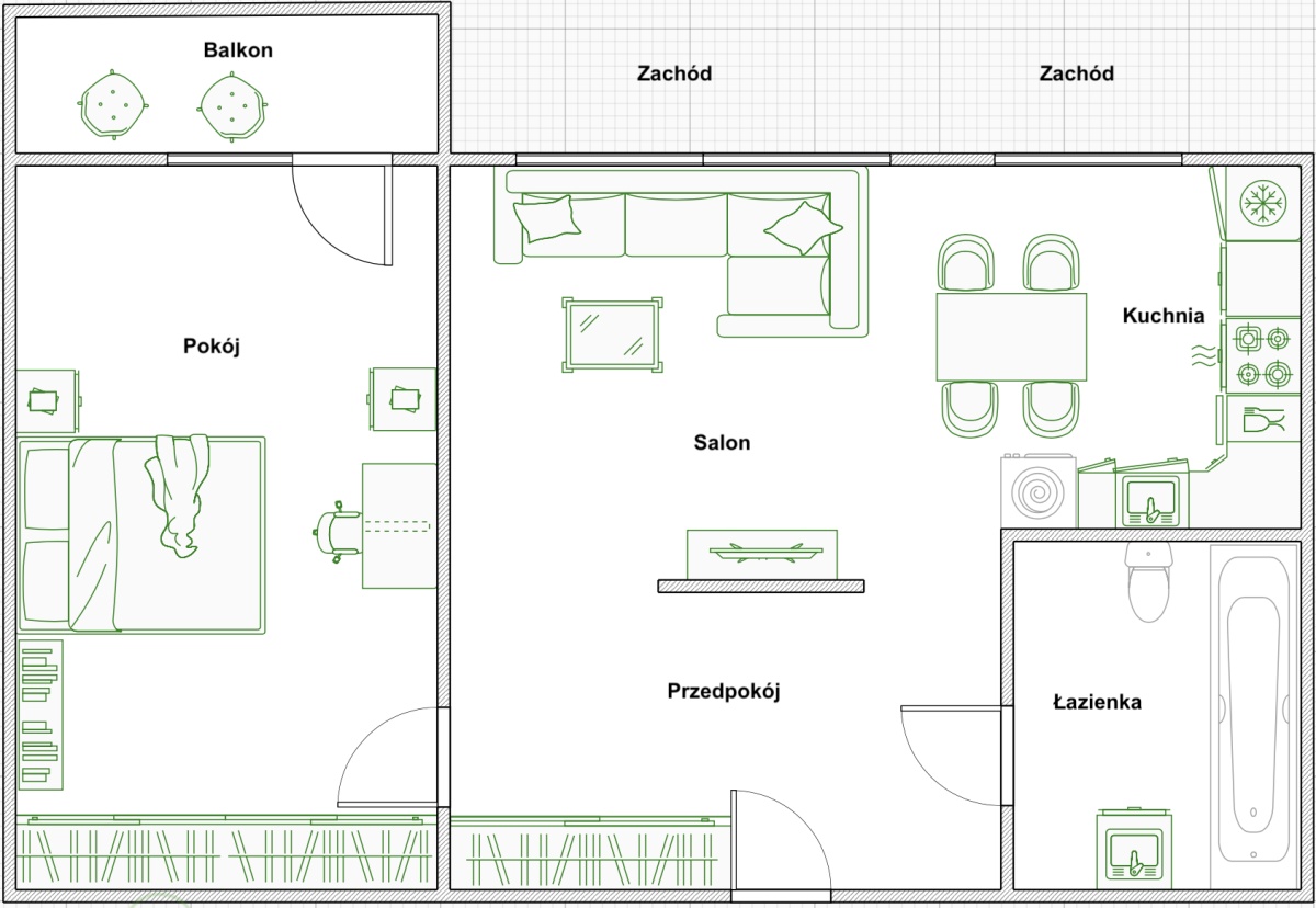 mieszkanie po zachodniej stronie bloku – bardzo jasne, dobrze doświetlone