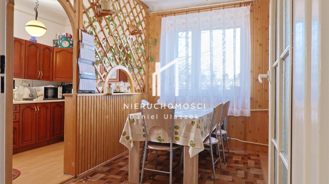 – jasna kuchnia z oknem otwarta na jadalnię z 4-osobowym stołem,
