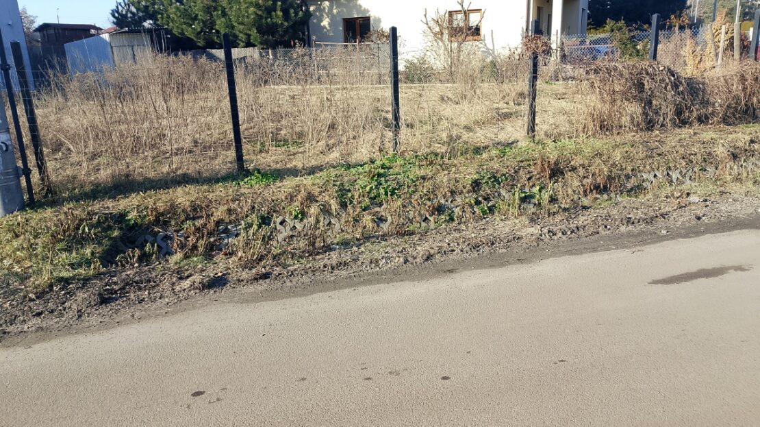 Wszystkie media miejskie , działka narożna trapez o bokach 26 x 34 x 34 x 9 .