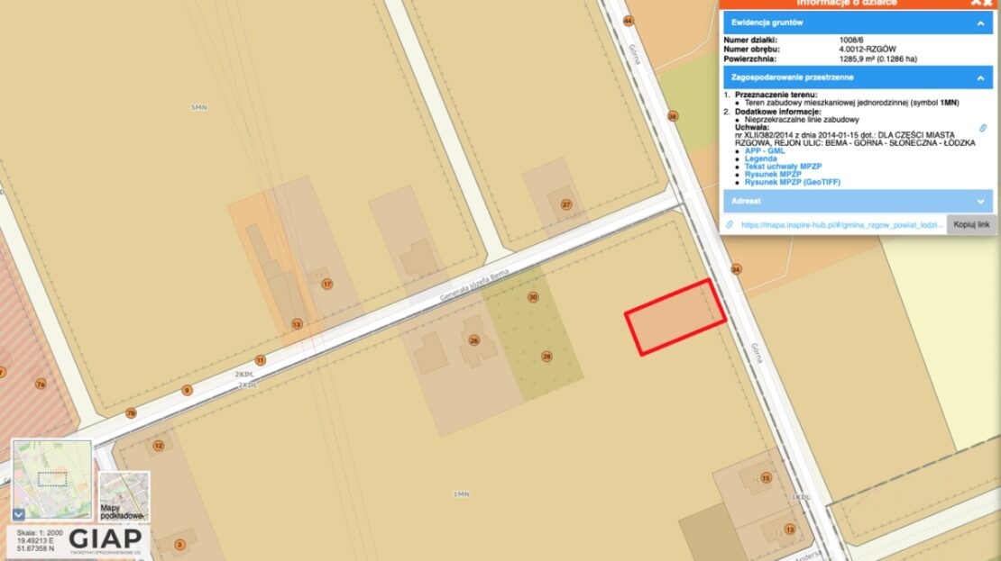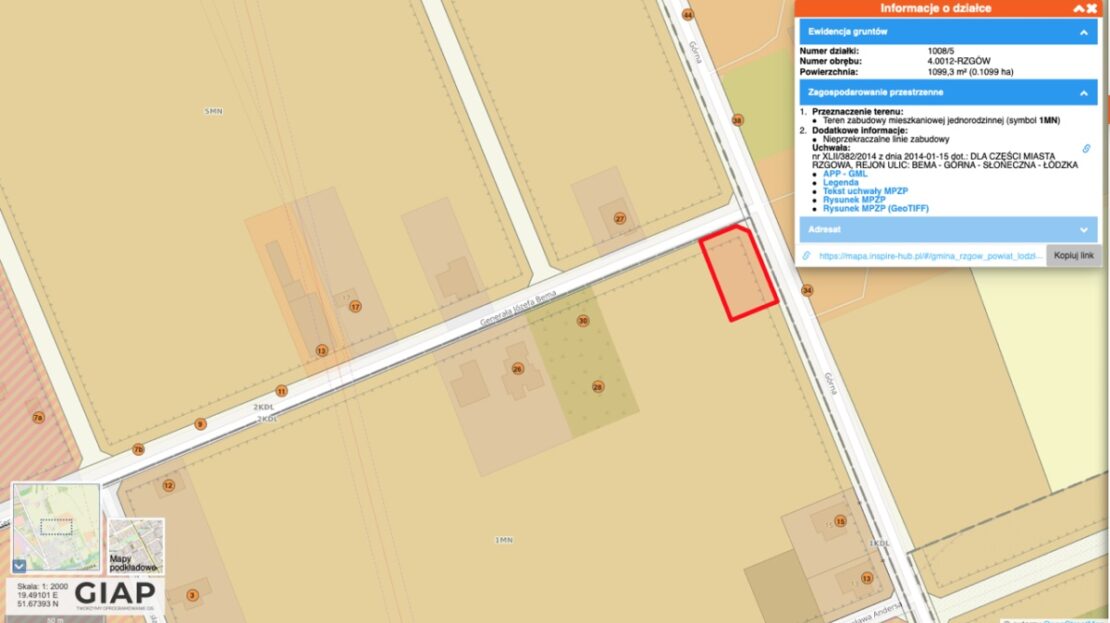działki zlokalizowane są w Rzgowie przy ul. Bema oraz przy ul.Górnej.