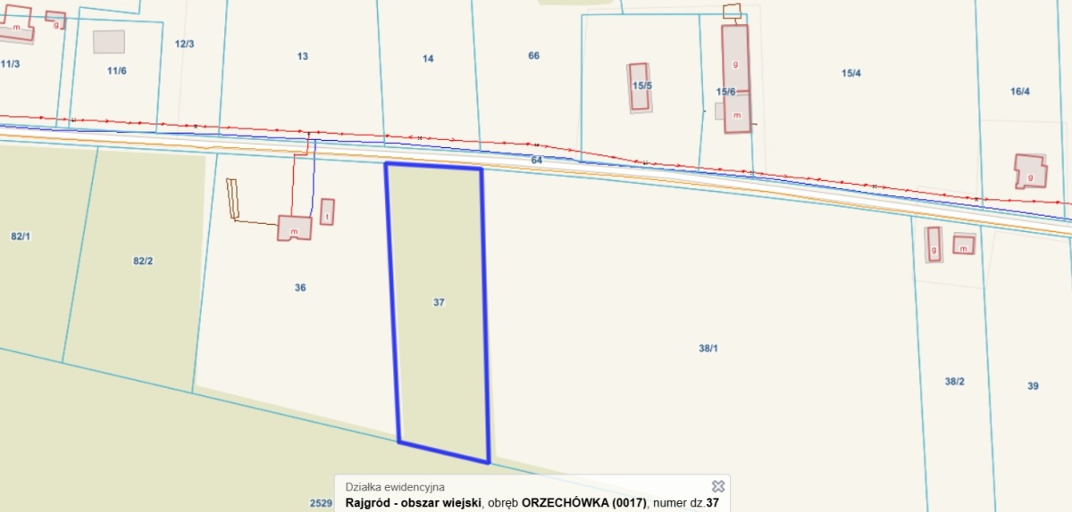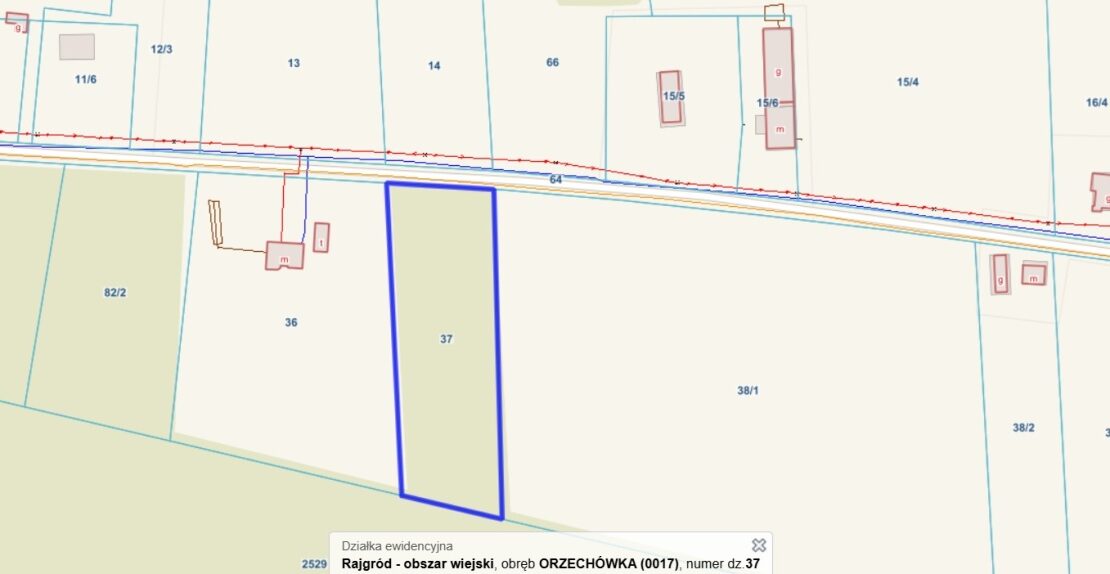 Na sprzedaż działka budowlana położona w miejscowości Orzechówko, gmina Rajgród, powiat grajewski.