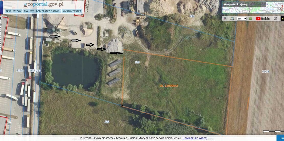 Dziełka nie jest utwardzona, ogrodzona. Do zagospodarowania przez ewentualnego najemcę we własnym zakresie. Dojazd do działki drogą asfaltową i betonową. Możliwe podłączenie do energii elektrycznej na podlicznik max 20Kw.