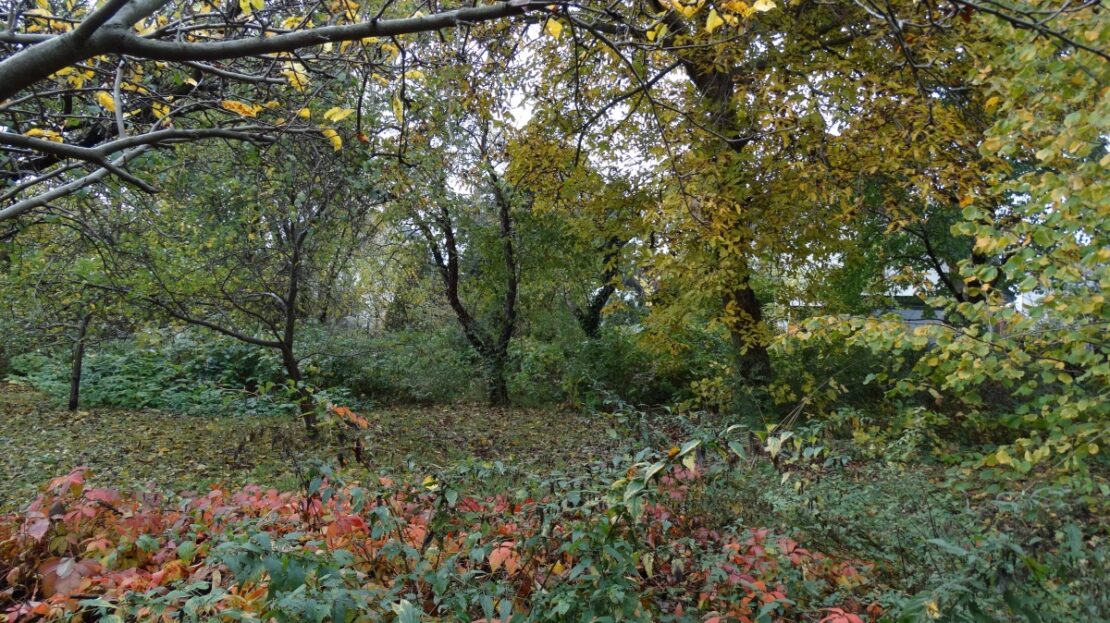 Nieruchomość obecnie zabudowana domem jednorodzinnym wolnostojącym do wyburzenia, działka obrośnięta zielenią po bokach, większość drzew na działce to drzewa owocowe.