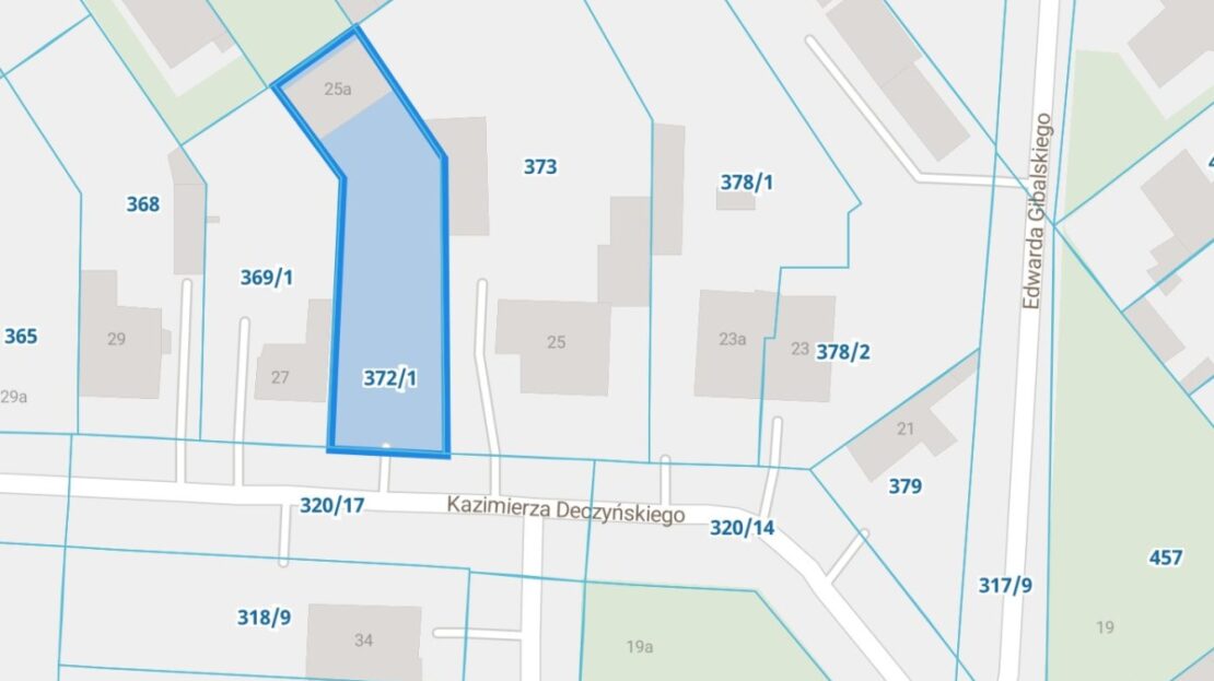 Działka o powierzchni 583 m2 z murowanym budynkiem garażowym o powierzchni użytkowej 67m2 . Nr 372/1 obręb B-23 .Media na działce prąd ( 17kW ), gaz. W ulicy woda, kanalizacja, światłowód. Do działki jest projekt domu parterowego 118m2 z pozwoleniem na budowę ważnym do 05.2026 .