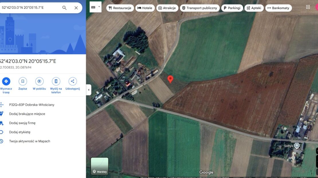 • Google maps: 52°42’03.0"N 20°05’15.7"E