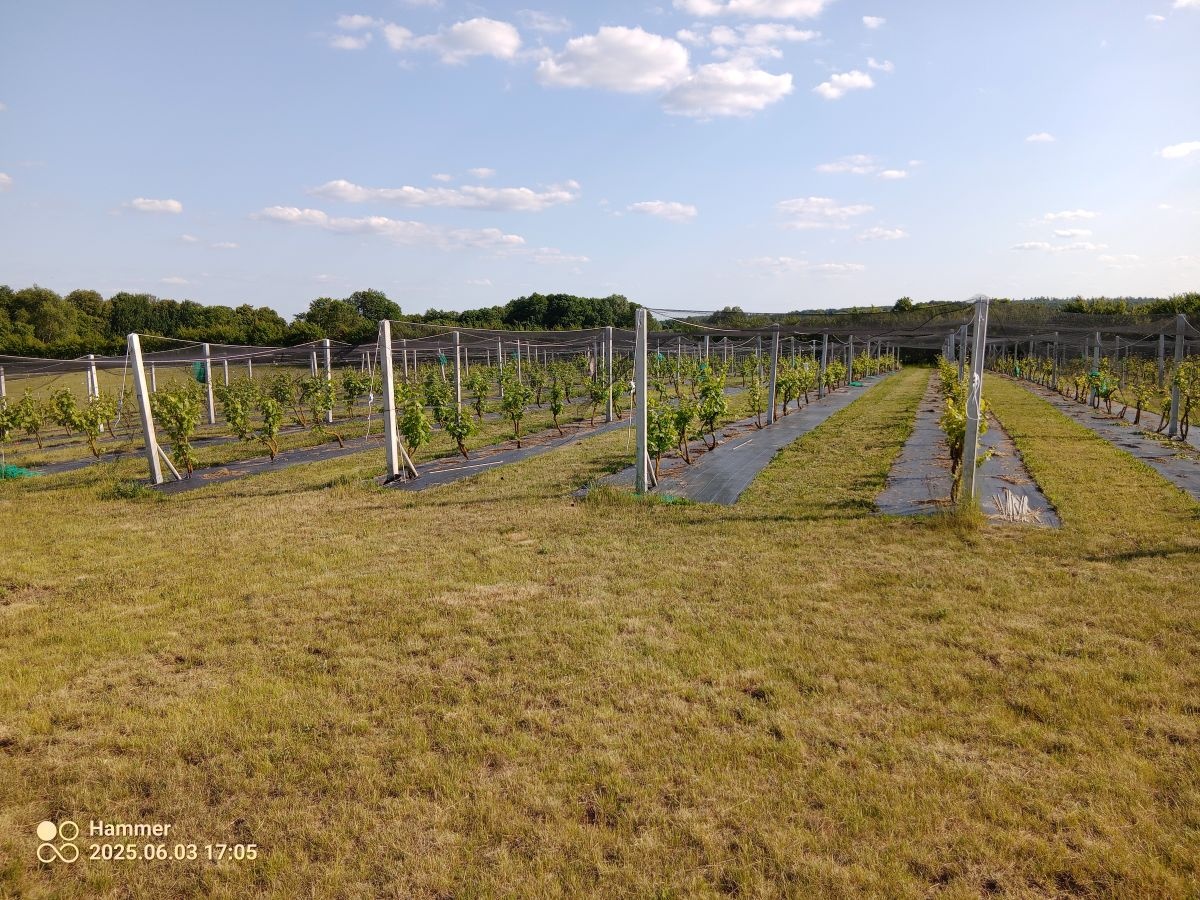 -7 letnia Winnica-550 certyfikowanych krzaków Pinot Noir,Seyval Blanc i Leon Millot.Areał można powiększyć.Obecna wydajność -700-900 kg.Winorośl corocznie docinana,nawożona i pielęgnowana.Winnica calkowicie oslonieta siatka przeciw szkodnikom.