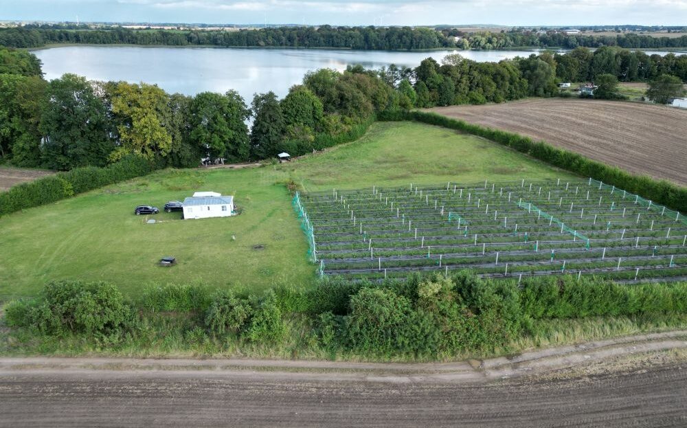 Sprzedam atrakcyjną działkę z linią brzegową jeziora-prywatną plaża i małą winnicą.Działka 1.25 ha.Około 35m bezpośredniego dostępu do jeziora(72.5 ha/max.głębokość 11m) i około 70 m dostępu przez skarpę nadbrzeżną. Możliwość uprawniania sportów wodnych/pływania w kameralnych okolicznościach przyrody. Działka obsiana trawą.Sąsiednie tereny uprawiane rolniczo-pszenica,żyto,rzepak.