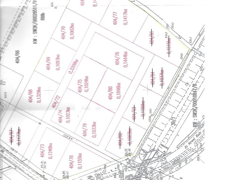 Działki są uzbrojone w kanalizację oraz przyłącza wodociągowe.