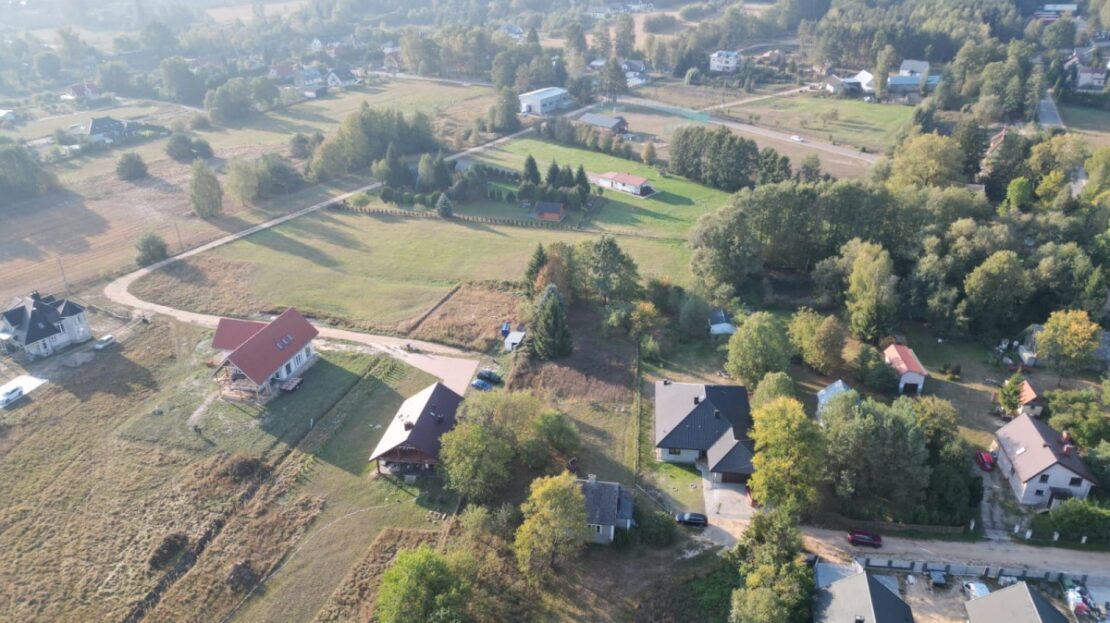 Działki położone są w okolicy domów jednorodzinnych, w otoczeniu lasów i w bezpiecznej odległości od rzeki na wzniesieniu.