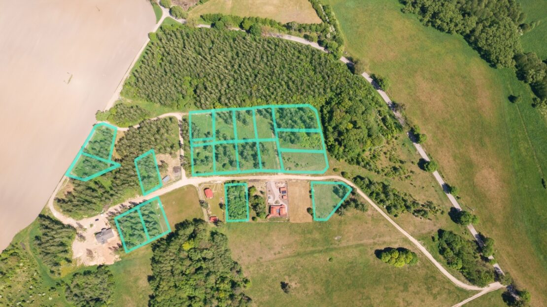 Działki są częściowo zalesione. Na każdej znajduje się od 5 do 15 drzew, głównie brzóz. Są to 20-30 letnie samosiejki, a więc już dorodne drzewa. W razie potrzeby mogą zostać usunięte, ale gorąco namawiam do ich przynajmniej częściowego pozostawienia. Drzewa stwarzają niepowtarzalny klimat. Domek w otoczeniu drzew to kwintesencja relaksu.