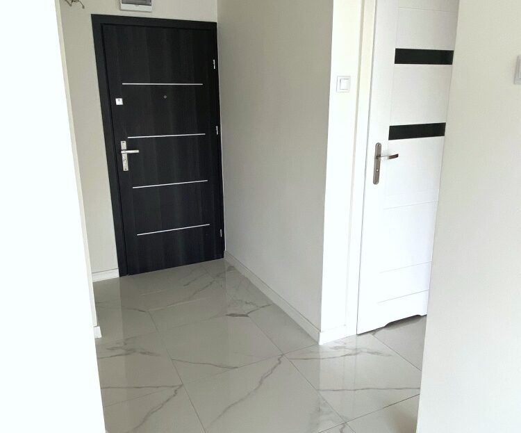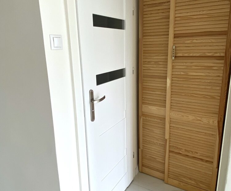 W przedpokoju zamontowane drzwi przesuwne do mini garderoby.