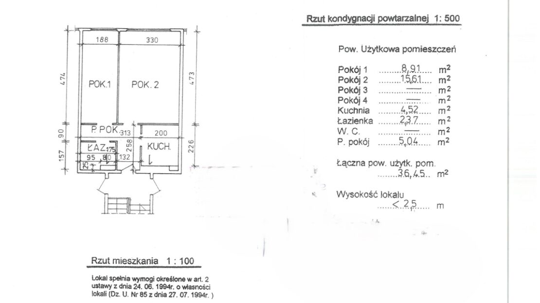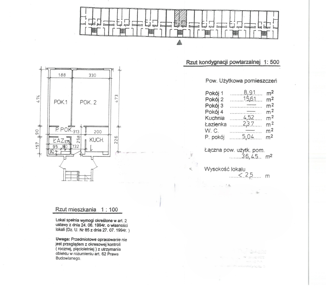 Spółdzielcze-własnościowe prawo do lokalu mieszkalnego położone na 4 piętrze w bloku z 1968 roku.