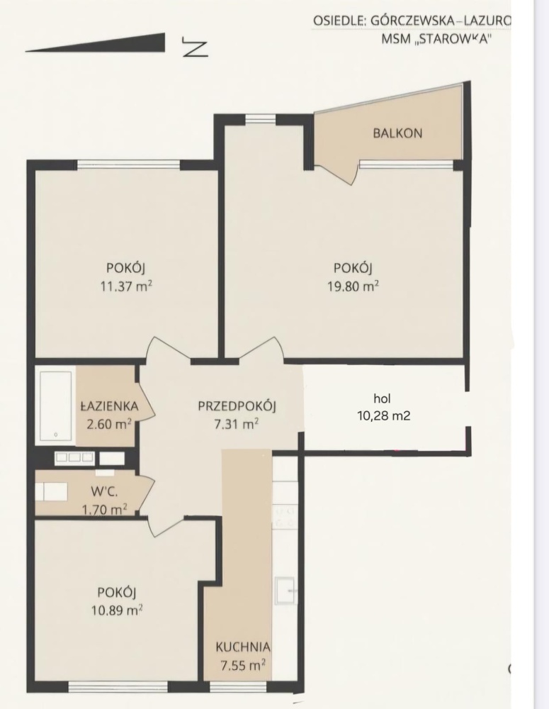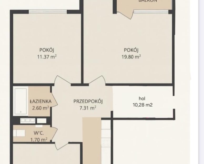 • Łazienka: 2,6 m²