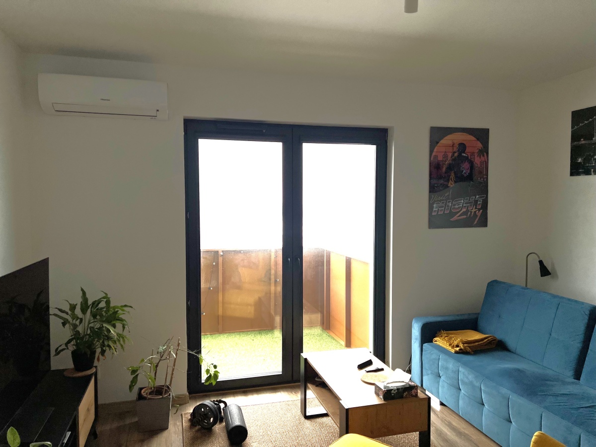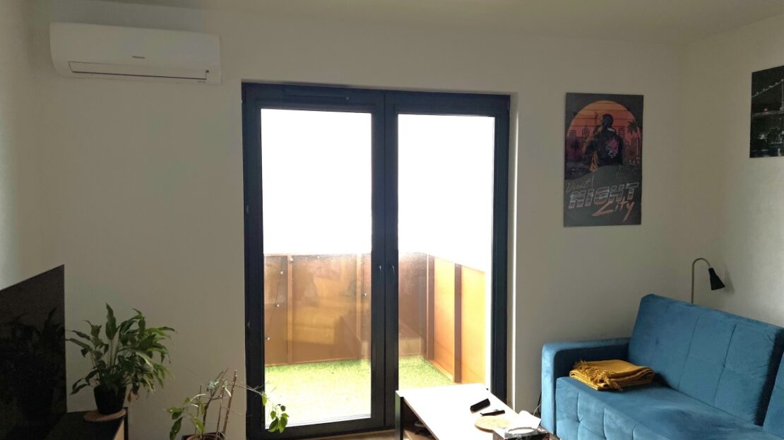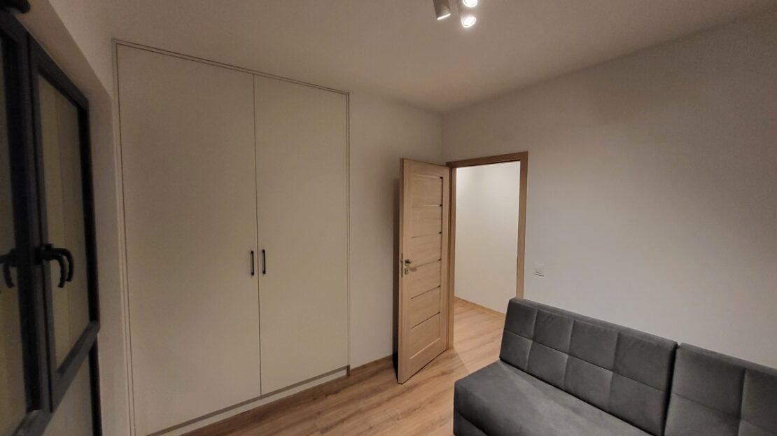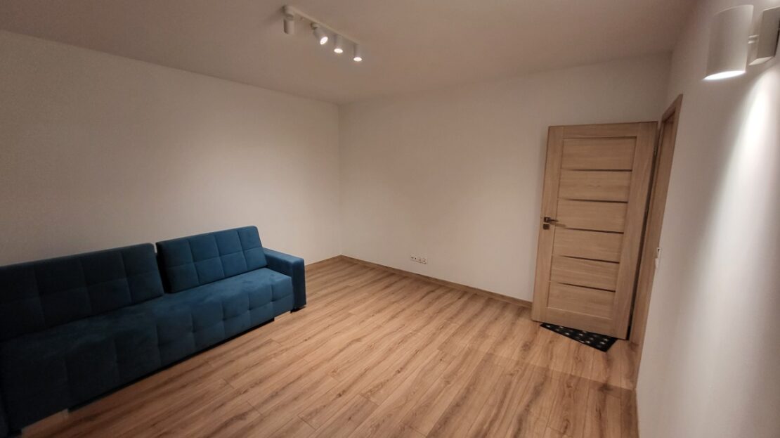 – Pokój dzienny: kanapa, klimatyzacja, szafka RTV, panele na podłodze
