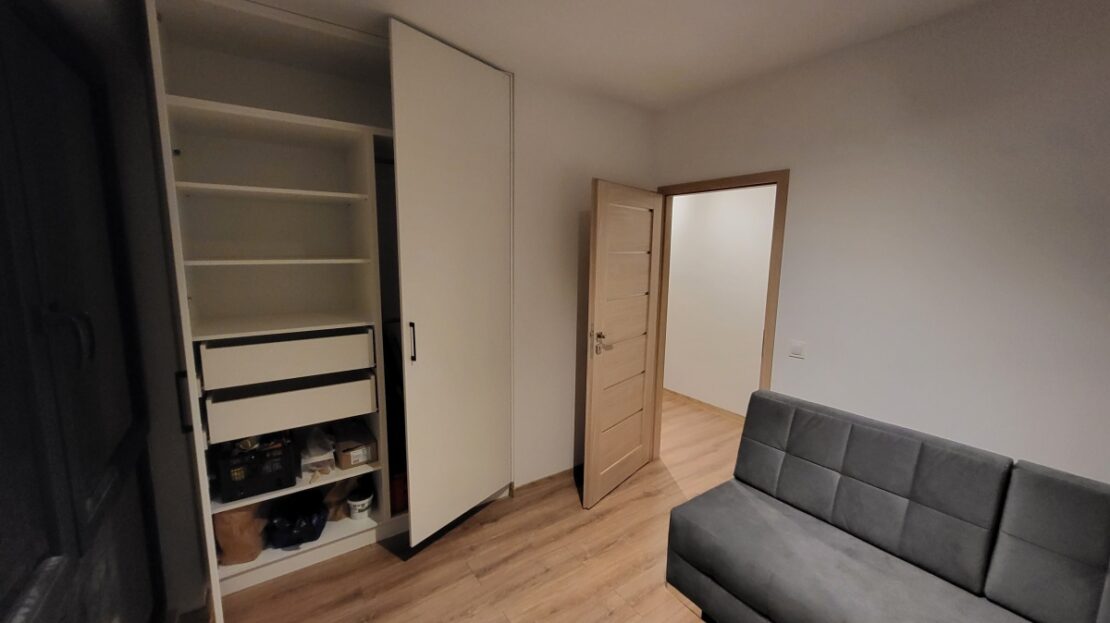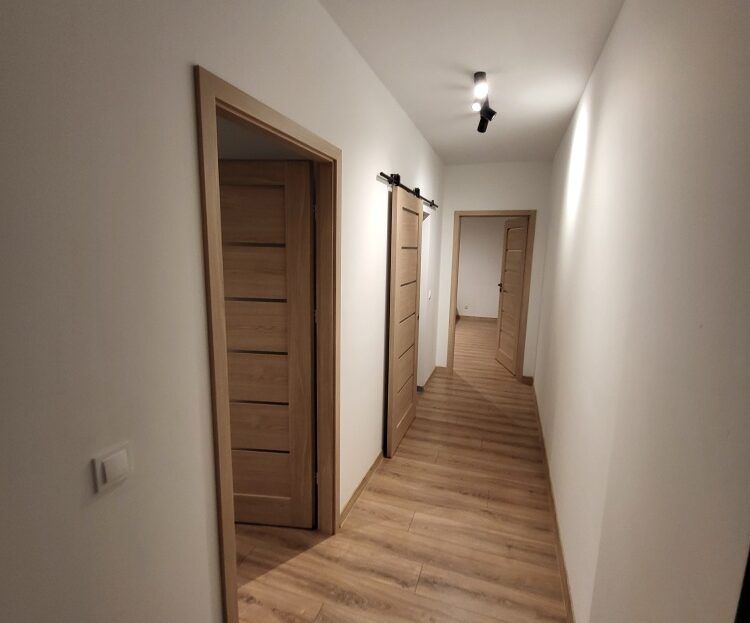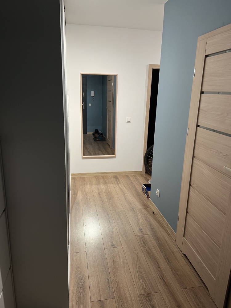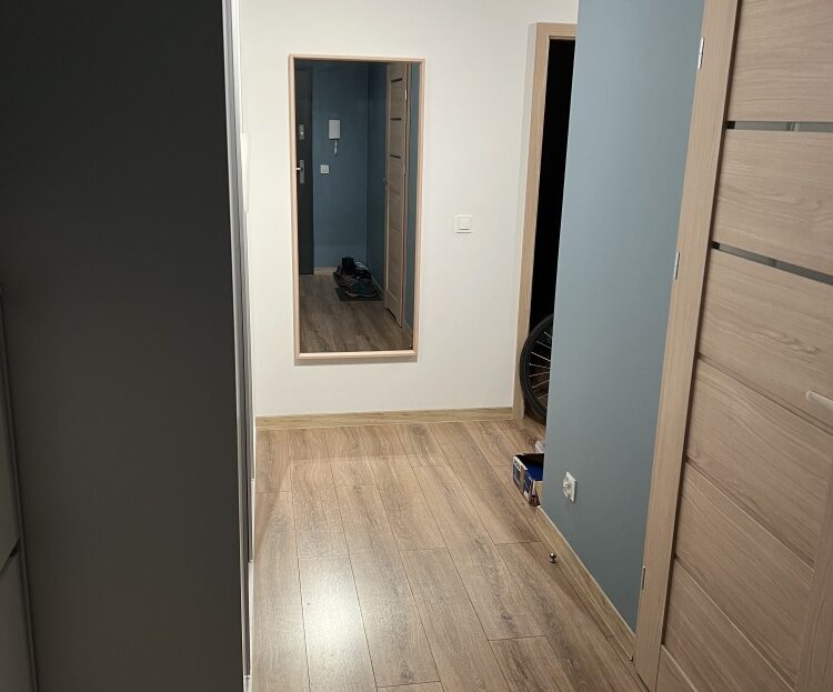 – Przedpokój: szafa w zabudowie, panele na podłodze