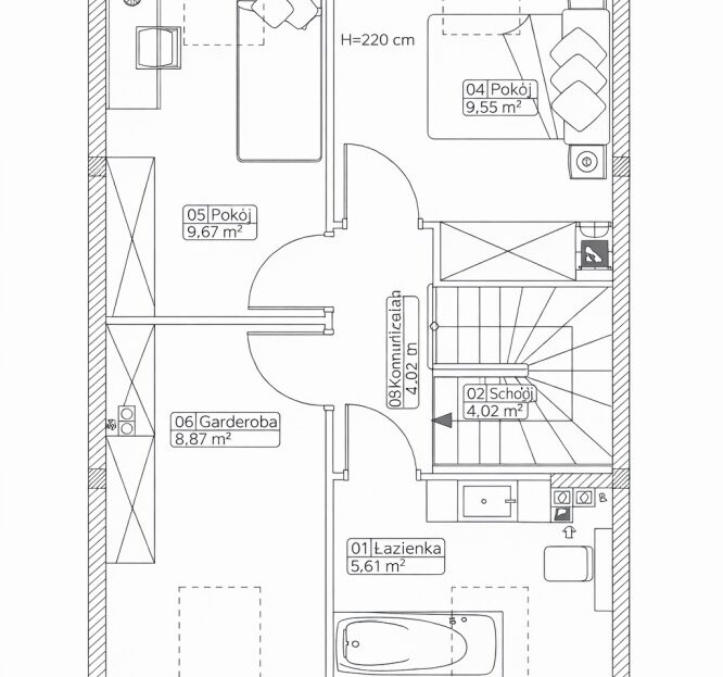 trzy sypialnie – 9,55 m² | 9,67 m² | 8,87 m²