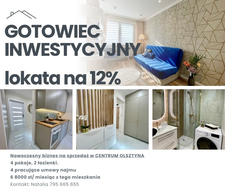 Posiadam na sprzedaż mieszkanie, które jest inwestycją. Posiada 4 wynajęte pokoje i miesięcznie daje przychód w kwocie 6 800 zł, co daje lokatę w wysokości aż 12 % w skali roku !!