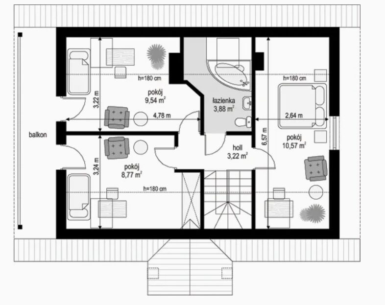 Dom główny: 3 sypialnie, 2 łazienki, salon, kuchnia i jadalnia oraz kotłownia.