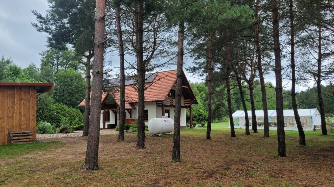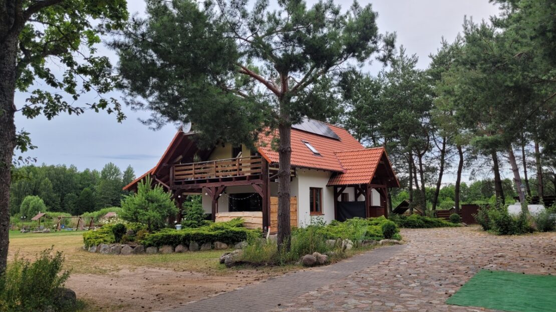 Sprzedamy wolnostojący dom jednorodzinny na dużej działce 1,5ha wraz z dwoma całorocznymi domkami (każdy 35m² powierzchni zabudowy).