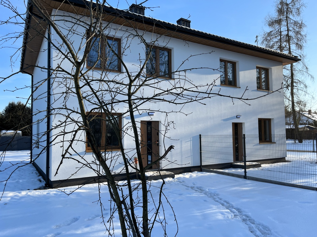 Nowy bliźniak w stanie deweloperskim położony w Milanówku przy ul. Wąskiej. Inwestycja zakończona, ogrzewanie podłogowe wygrzane, wszystkie prace zakończone, dom zgłoszony do użytkowania, pełna gotowa dokumentacja do sprzedaży. Jest to jeden bliźniak w otoczeniu zabudowy jednorodzinnej, a nie duże osiedle ze wspólnymi wjazdami. Kameralna inwestycja, każda połówka ma oddzielny wjazd bezpośrednio z drogi publicznej. Cicha i zielona okolica. Inwestycja zrealizowana, zakończenie prac grudzień 2025. Dom wzniesiony z wysokiej jakości materiałów z markowymi oknami i drzwiami. Ogrzewanie podłogowe wodne w całym budynku. W połączeniu z pompą ciepła tworzy najtańsze źródło ciepła na chwilę obecną. Sam mieszkam w bliźniaku z takim źródłem ciepła i chętnie przedstawię wszelkie rachunki do wglądu. Na parterze salon z aneksem kuchennym, łazienka, wiatrołap i hol. Piętro to 3 sypialnie, korytarz i łazienka. Cena brutto do której należy doliczyć koszt montażu pompy ciepła od 24 tys. do 30 tys. zł z gwarancją ceny. Pompę mogę założyć (cała instalacja jest już przygotowana), natomiast przy samodzielnym montażu pompy można obniżyć przez dotacje podane wyżej koszty. Droga gminna oświetlona, utwardzona z kompletem mediów: prąd, woda, gaz, światłowód, kanalizacja ( kanalizacja jest już w drodze i w planach do przyłączenia przez krótki przejściowy okres szambo). W pobliżu przystanek komunikacji miejskiej. Szybki dojazd do A2 (3-4 minuty z pominięciem korków).