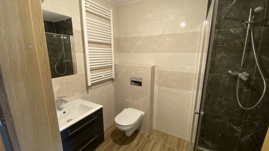 Węzeł sanitarny: Dwie toalety oraz łazienka z prysznicem.