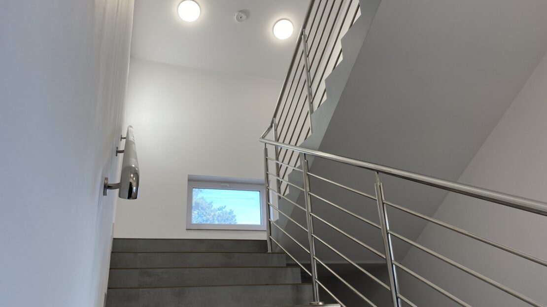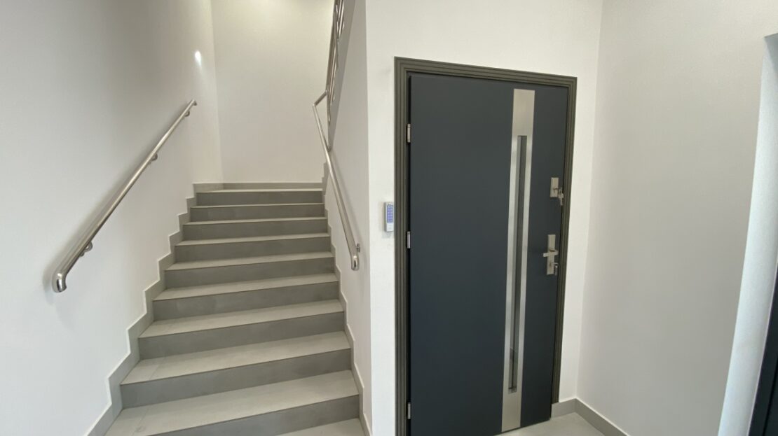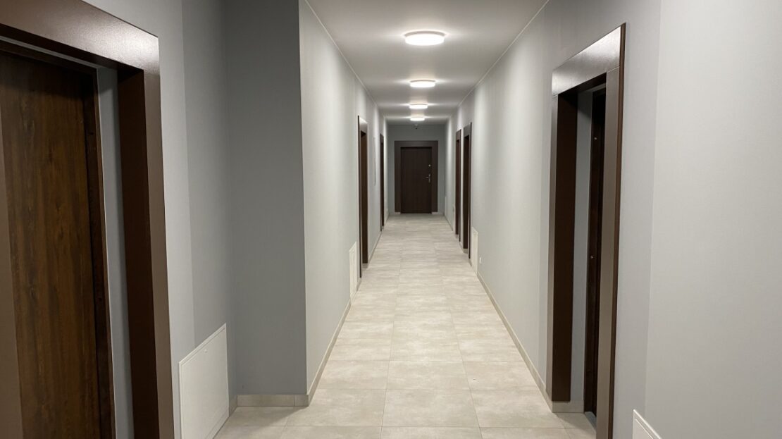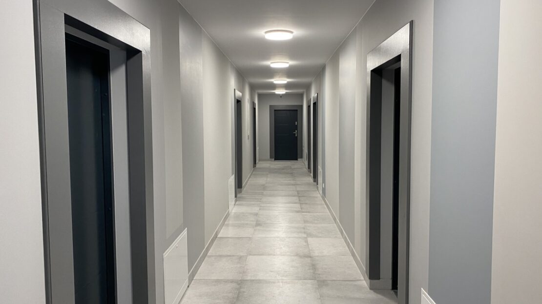 Szerokie korytarze: Ciągi komunikacyjne spełniają wymogi dla obiektów użyteczności publicznej, umożliwiając swobodne poruszanie się na wózkach.