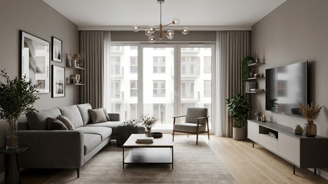 Prezentowane wizualizacje mają charakter poglądowy i zostały wygenerowane przy użyciu narzędzi sztucznej inteligencji. Przedstawiają przykładową aranżację wnętrza i nie stanowią odzwierciedlenia stanu faktycznego nieruchomości ani oferty wykończenia.