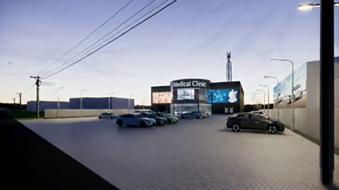 • Centrum Medyczne / Klinikę specjalistyczną (duży parking + łatwy dojazd),