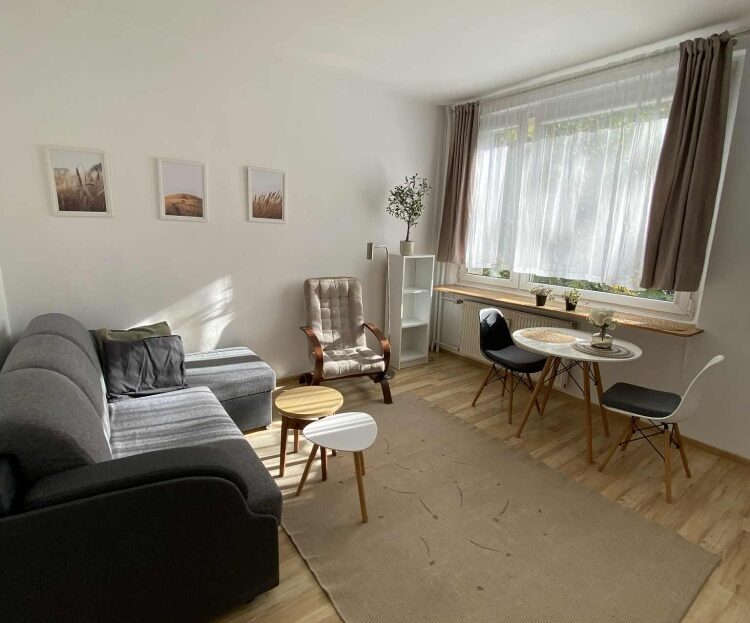 Na sprzedaż – komfortowe, jasne i ciche mieszkanie o powierzchni 20,86 m² w spokojnej okolicy na Koszutce, przy ul. Broniewskiego 1B. Doskonałe jako inwestycja. Budynek po termomodernizacji. Klatka schodowa po remoncie, nowe balustrady. Wymieniona instalacja wod-kan oraz gazowa. Spokojni sąsiedzi, uczynny zarządca. Mieszkanie znajduje się na 1 piętrze w 8 piętrowym czystym budynku otwieranym na kod (domofon). Okna na całej długości mieszkania na stronę południową. Mieszkanie składa się z przedsionka, salonu, aneksu kuchennego, łazienki i przedpokoju wraz ze schowkiem, pojemną 3-drzwiową szafą przesuwną na całej długości ściany. Kanapy z funkcją spania, stołu wraz z krzesłami. W łazience prysznic. Na podłodze kafelki oraz panele. Na ścianach gładź, w łazience kafelki. Mieszkanie środkowe, ciepłe, ogrzewanie centralne z Taurona (rozliczane raz w roku przez wspólnotę wg metrażu mieszkania oraz zużycia).